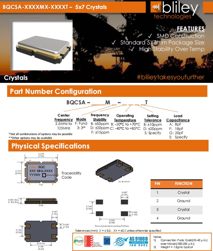 Bliley晶振,6G通訊設(shè)備晶振,BQCSA-16.000MF-BCDGT四腳晶振,美國Bliley晶振公司,貼片晶振,石英晶振,6G物聯(lián)網(wǎng)晶振,高精度儀器晶振,高品質(zhì)晶振,7050晶振,四腳晶振,以太網(wǎng)晶振,無源晶振,SMD封裝,標準5X7mm包裝尺寸,高溫下高穩(wěn)定性