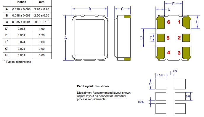 | Frequency頻率 | 125MHz | Termination 腳位 | 6-pad |