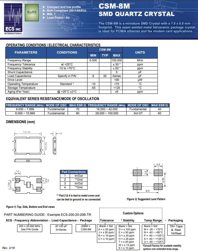 | ECS-160-20-20BM-TR | CSM-8M | 16MHz | ±50ppm | ±30ppm | 20pF |