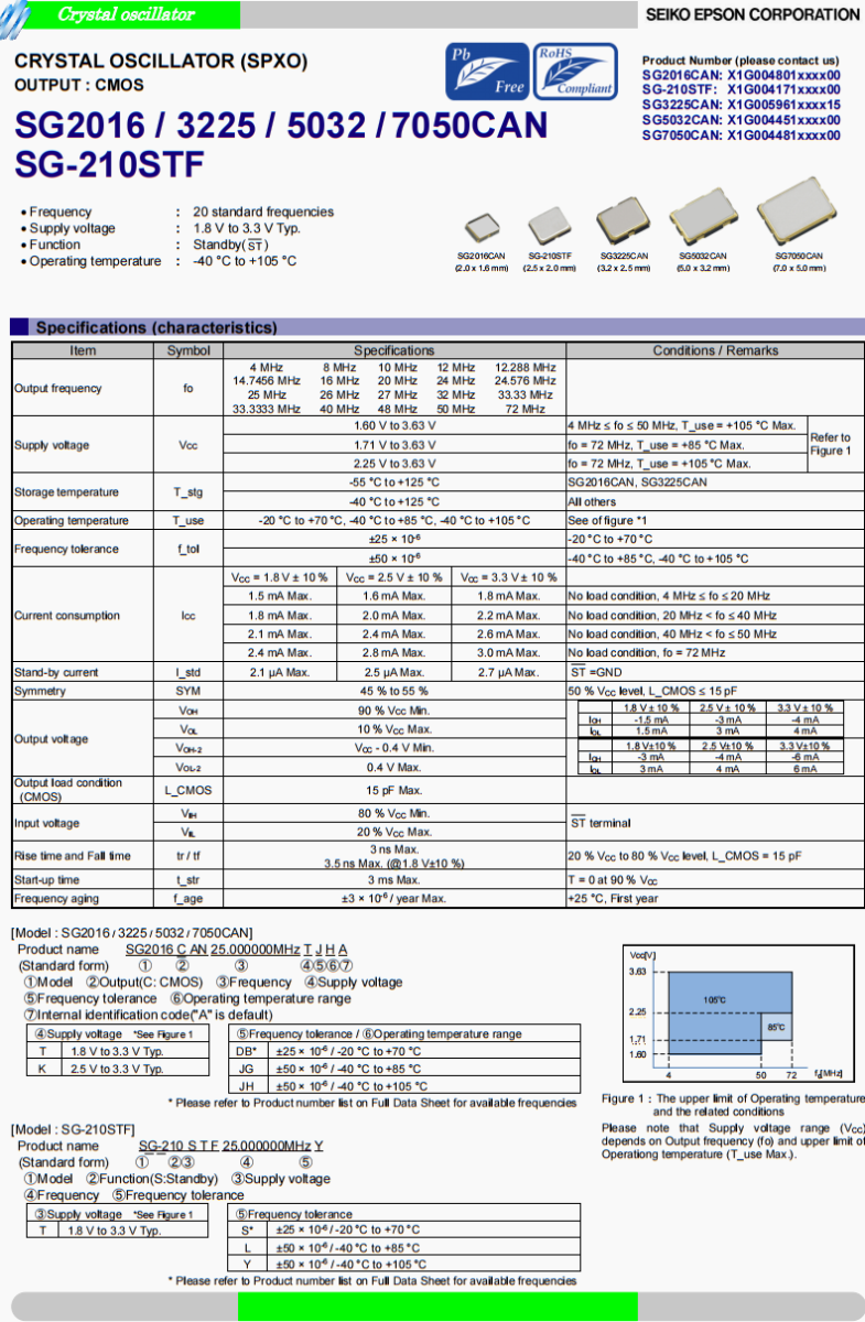 | 儲(chǔ)存溫度 | T_stg | -55 °C to +125 °C | SG2016CAN, SG3225CAN | |||||||||||