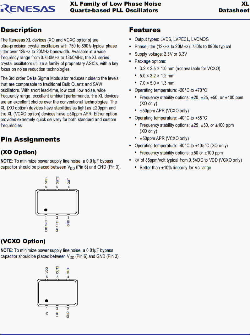 | XLP736A00.000000I | Renesas晶振 | XPRESSO FXO-PC73 | 1 GHz | LVPECL | 3.3V | ±25ppm |
