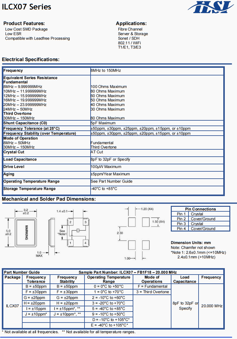 基礎(chǔ)等效串聯(lián)電阻 8MHz – 9.999999MHz 10MHz – 11.999999MHz 12MHz – 15.999999MHz 16MHz – 19.999999MHz 20MHz – 23.999999MHz 24MHz – 50MHz Third Overtone 30MHz – 150MHz |