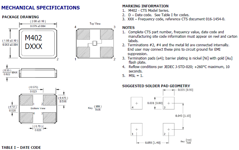 | Type系列: | MHz Crystal | 腳位Termination: | 4-Pad |