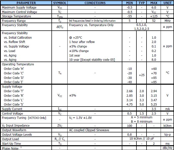 7.0毫米x 5.0毫米的表面安裝包,頻率范圍5 - 52 MHz,基本晶體設(shè)計(jì),頻率穩(wěn)定度,選擇從±0.5 ppm ~±2.5 ppm,操作電壓,+ 2.8 vdc ~ + 5.0伏直流,操作溫度為-40°C + 85°C,磁帶和卷軸包裝標(biāo)準(zhǔn),eia - 418,符合RoHS /綠(6/6).