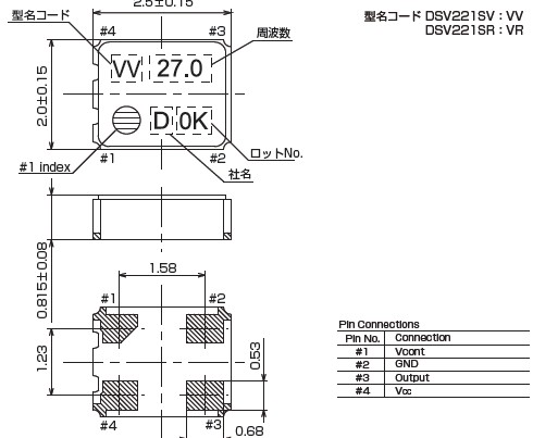 DSV221SV晶振,KDS石英晶振,VCXO壓控振蕩器,是只晶體本身起振需要外部電壓供應(yīng),起振后可直接驅(qū)動CMOS 集成電路,產(chǎn)品本身已實現(xiàn)與薄型IC(TSSOP封裝,TVSOP封裝)同樣的1mm厚度,斷開時的消費電流是15 µA以下,編帶包裝方式可對應(yīng)自動搭載及IR回流焊接(無鉛對應(yīng))產(chǎn)品有幾種電壓供選1.8V,2.5V,3V3.3V,5V,以應(yīng)對不同IC產(chǎn)品需要.