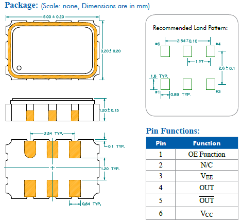 | Size/Dimension尺寸 | 5032時(shí)鐘振蕩器 | 最小包裝數(shù)MPQ: | 1000 |