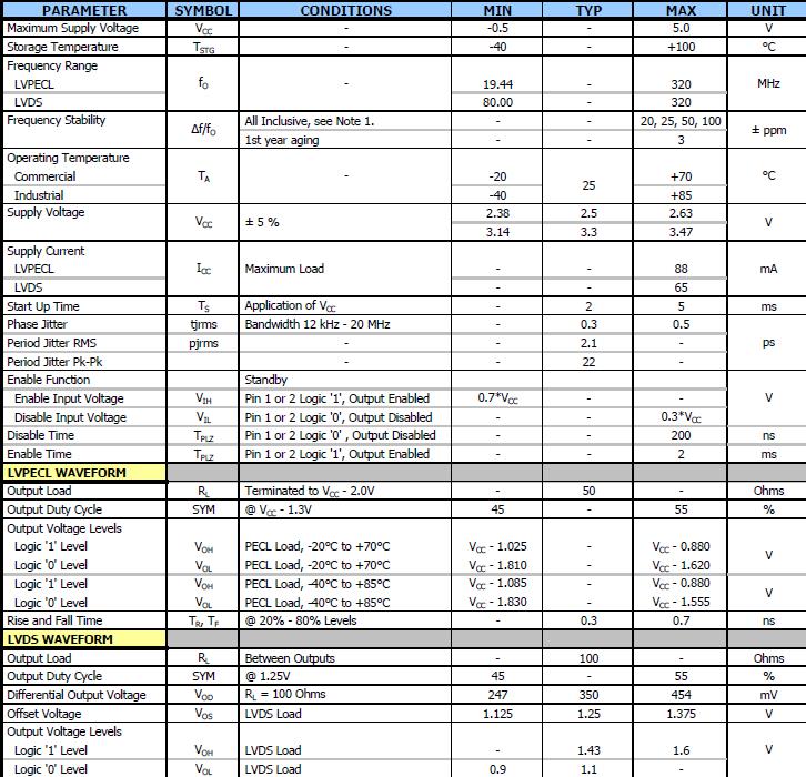 標(biāo)準(zhǔn)的7.0毫米x 5.0毫米,6-Pad表面安裝包,低相位抖動(dòng),0.5 ps RMS最大值,LVPECL或LVDS輸出,基本和第三泛音晶體的設(shè)計(jì),頻率范圍19.44 - 320 MHz,頻率穩(wěn)定度±50 ppm標(biāo)準(zhǔn),操作電壓+ 2.5 vdc或+ 3.3伏直流,操作溫度為-40°C + 85°C,允許輸出標(biāo)準(zhǔn),磁帶和卷軸包裝標(biāo)準(zhǔn),eia - 418,符合RoHS.