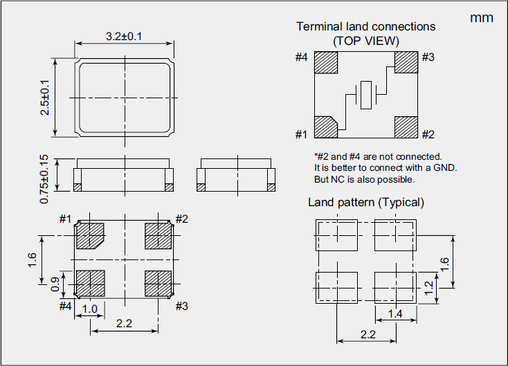 | Size/Dimension尺寸 | 3225mm | 安裝方式 Installation: | Surfacemount |