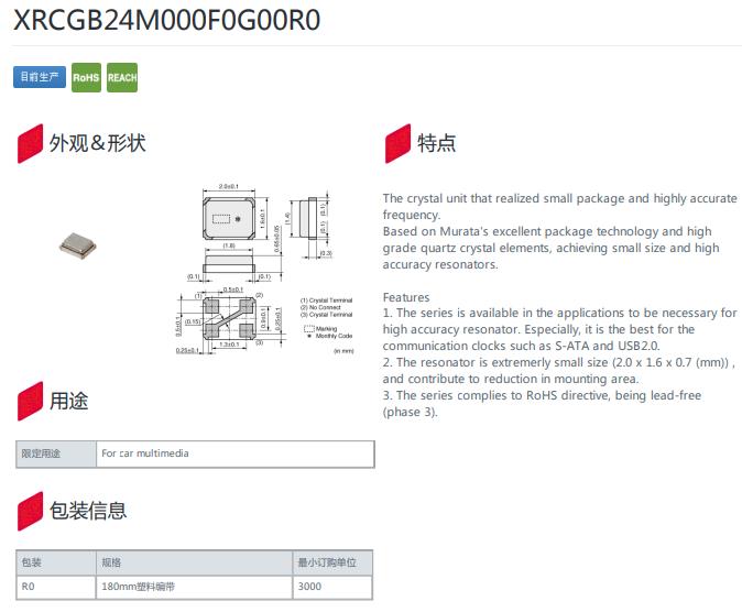 | XRCGB24M576F3G00R0 | HCR2016 | 24.5760MHz | ±30ppm | ±50ppm | 150Ω | 6pF | -40℃ to 85℃ |