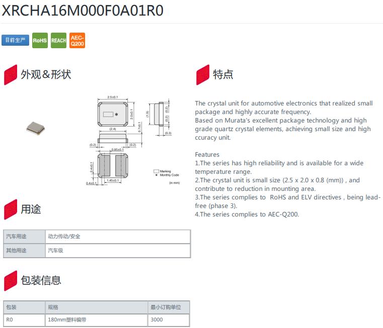 日本村田進口晶振HCR2520,XRCHA16M000F0A01R0汽車電子專用晶振,參數(shù)圖