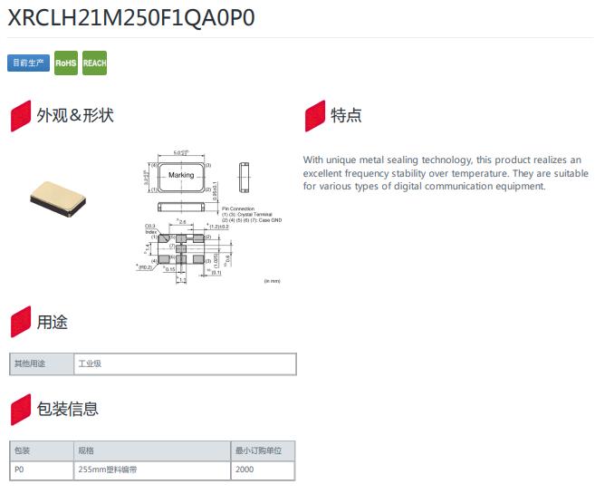 XRCLH21M250F1QA0P0 21.25MHz -30~85℃ 5032mm 8pf ,XRCLH21M250F1QA0P0,頻率21.25MHz,工作溫度-30~85℃,尺寸5032mm,負載8pf,高精度晶振,數(shù)字通信設(shè)備晶振,測量儀器晶振,微處理器晶振,數(shù)碼音影系統(tǒng)晶振.
