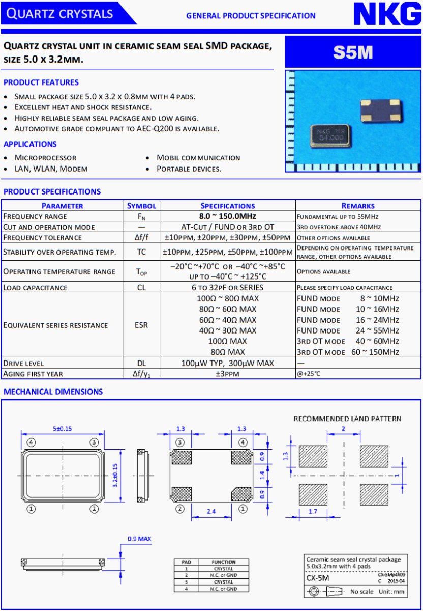 S5M27.1200F16MYY-EXT環(huán)保晶振,NKG5032晶體,6G型號(hào)發(fā)射器晶振