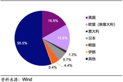中國主要對外出口國及出口比例