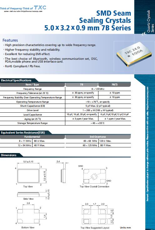 | 7B-8.000MAAJ-T | TXC晶振 | 7B | 8MHz | ±30ppm | -20°C ~ 70°C |
