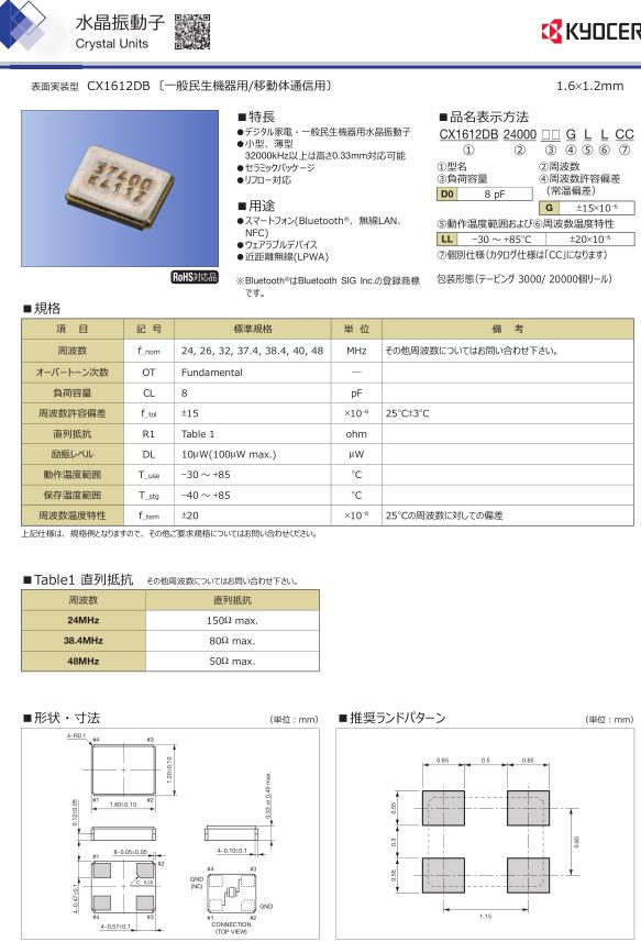 | CX3225GB19200P0HPQCC | AVX Corp/Kyocera Corp | CX3225GB, Kyocera | MHz Crystal | 19.2MHz |