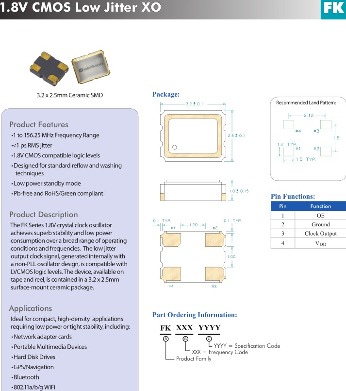 FK系列1.8V晶體時(shí)鐘振蕩器實(shí)現(xiàn)極好的穩(wěn)定性和低功率消費(fèi)范圍廣,經(jīng)營(yíng)范圍廣條件和頻率。低抖動(dòng)輸出時(shí)鐘信號(hào),內(nèi)部產(chǎn)生非鎖相環(huán)振蕩器的設(shè)計(jì),是兼容的LVCMOS邏輯水平的SPXO振蕩器。該設(shè)備,可用于磁帶和卷軸,包含在一個(gè)3.2 x 2.5mm陶瓷表面包。