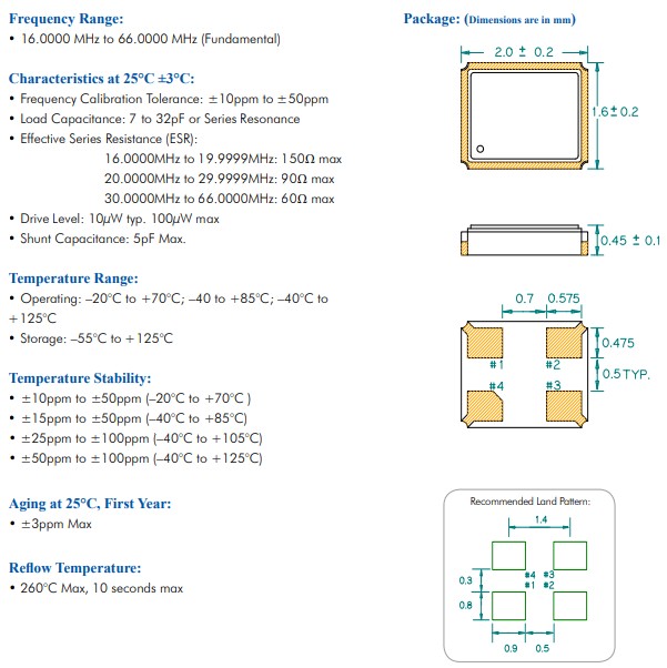 | Package Size (mm) | 2.0 x 1.6 x 0.45 |