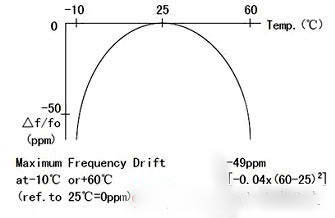 石英晶片的切型大致可以分為AT切、BT切、CT切、DT切等,不同的切型,所對應的頻率溫度曲線不一樣。下面兩幅圖的分別為音叉32.768KHZ晶體和AT切MHZ晶體的頻率溫度曲線。