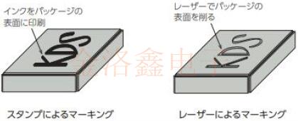 從使用激光標(biāo)識(shí)油墨的凸版標(biāo)識(shí)變更為使用激光加工成金屬陶瓷樹(shù)脂面的標(biāo)識(shí).在消除墨水的使用的同時(shí),伴隨著小型化,貼片晶振表面的微細(xì)標(biāo)記也成為可能.