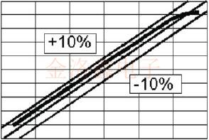 ●線性通常指定為相對于調(diào)整曲線的直線擬合的總調(diào)整偏差的百分比.10%的線性度規(guī)格將允許與1KHz調(diào)諧范圍的振蕩器的最佳直線擬合相差100Hz.潛在的問題是,該偏差可能會在范圍的一端迅速出現(xiàn),如下所示.盡管振蕩器符合相當嚴格的線性指標,但在曲線頂部的斜率明顯較低.對于調(diào)諧斜率會影響環(huán)路穩(wěn)定性的PLL系統(tǒng),除了線性百分比外,還應(yīng)指定曲線上所有點的最小和最大調(diào)諧斜率.