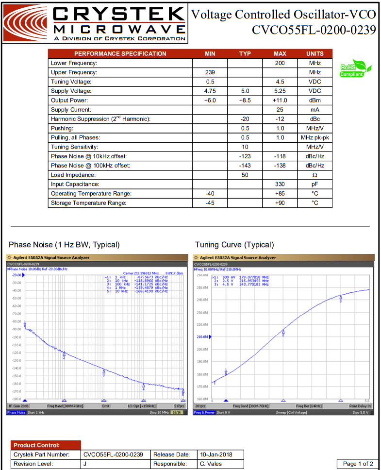 CVCO55FL-0200-0239是數(shù)字無線電設(shè)備、固定無線接入、衛(wèi)星通信系統(tǒng)和基站等應(yīng)用的理想選擇。