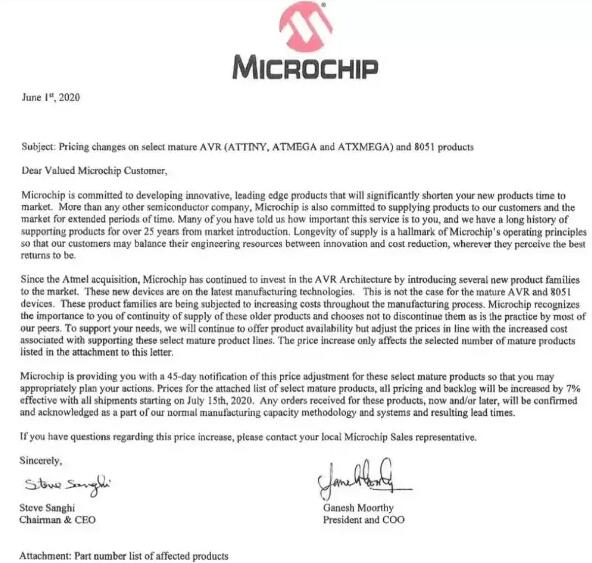 面對(duì)來勢(shì)洶洶的新冠疫情,美國當(dāng)?shù)氐膽?yīng)對(duì)方案和措施顯示是不合格的,每天仍有萬人以上的新增感染病例,累計(jì)人數(shù)直逼200萬大頭,美國多家企業(yè)和生產(chǎn)工廠已經(jīng)不堪重負(fù).美國是公認(rèn)的電子元件發(fā)達(dá)國家,許多國家包括中國都長(zhǎng)期采購他們生產(chǎn)的種類元器件和組件,但如今因?yàn)橐咔橐约懊绹鴩鴥?nèi)矛盾引發(fā)的暴亂,許多產(chǎn)品交期延長(zhǎng)一倍不止,而且缺少作業(yè)人員,原材料成本上升.美國Microchip Technology Inc.公司6月1日,給所有客戶發(fā)了一封調(diào)價(jià)函,內(nèi)容稱7月15號(hào)之后,旗下的部分產(chǎn)品單價(jià)將上調(diào)7%. Microchip是一家主要做微處理器,微控制器,頻率控制元件,數(shù)據(jù)轉(zhuǎn)換器等多種電子產(chǎn)品的制造商,總部位于亞利桑那州錢德勒,國內(nèi)市場(chǎng)上有部分生產(chǎn)廠家,使用Microchip公司生產(chǎn)的石英晶體振蕩器和MEMS硅振蕩器.但是幸運(yùn)的是,在調(diào)價(jià)名單中,沒有包括時(shí)鐘元件,而且一直以來Microchip晶振的性價(jià)比就比較高,同樣的規(guī)格和品質(zhì),價(jià)格一般不會(huì)很高,而且質(zhì)量和口碑在業(yè)界算是比較高的.