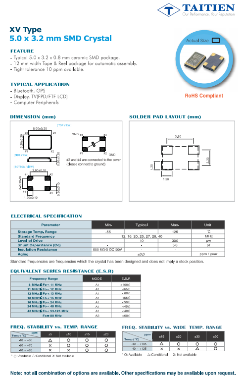 XVCCECNANF-25.000000~臺灣Taitien晶振~5032mm四腳貼片晶振,參數(shù)圖