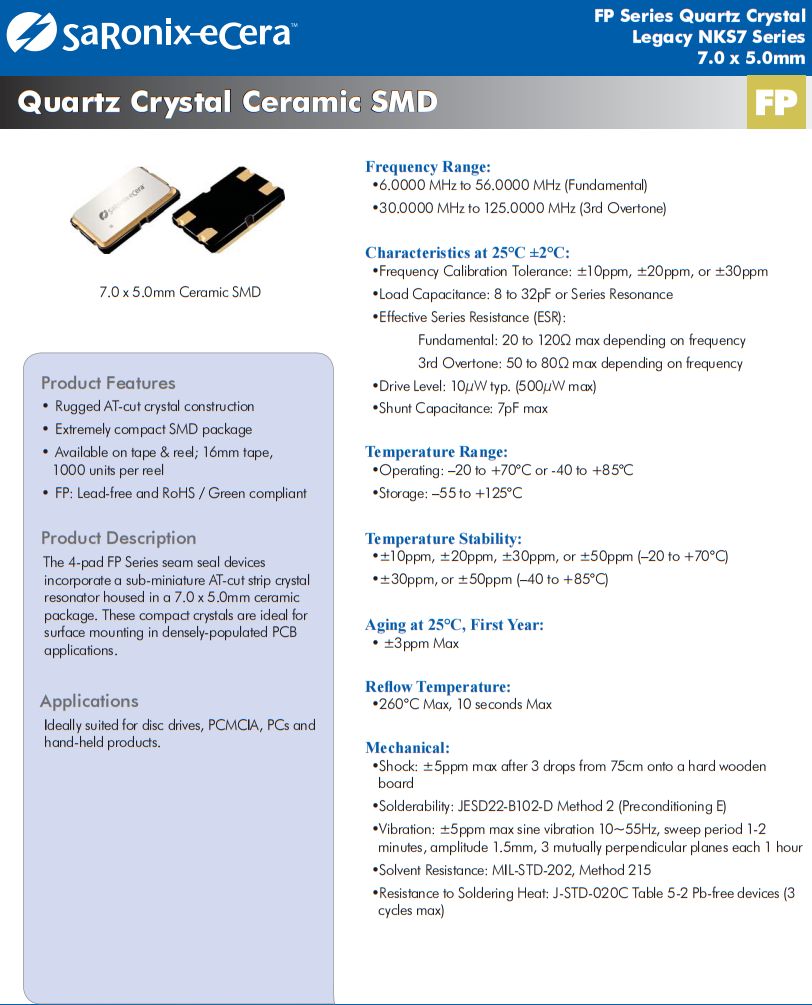| FP1200042 | Diodes 晶振 | FP | 12 MHz | ±50ppm | ±50ppm | 22pF |